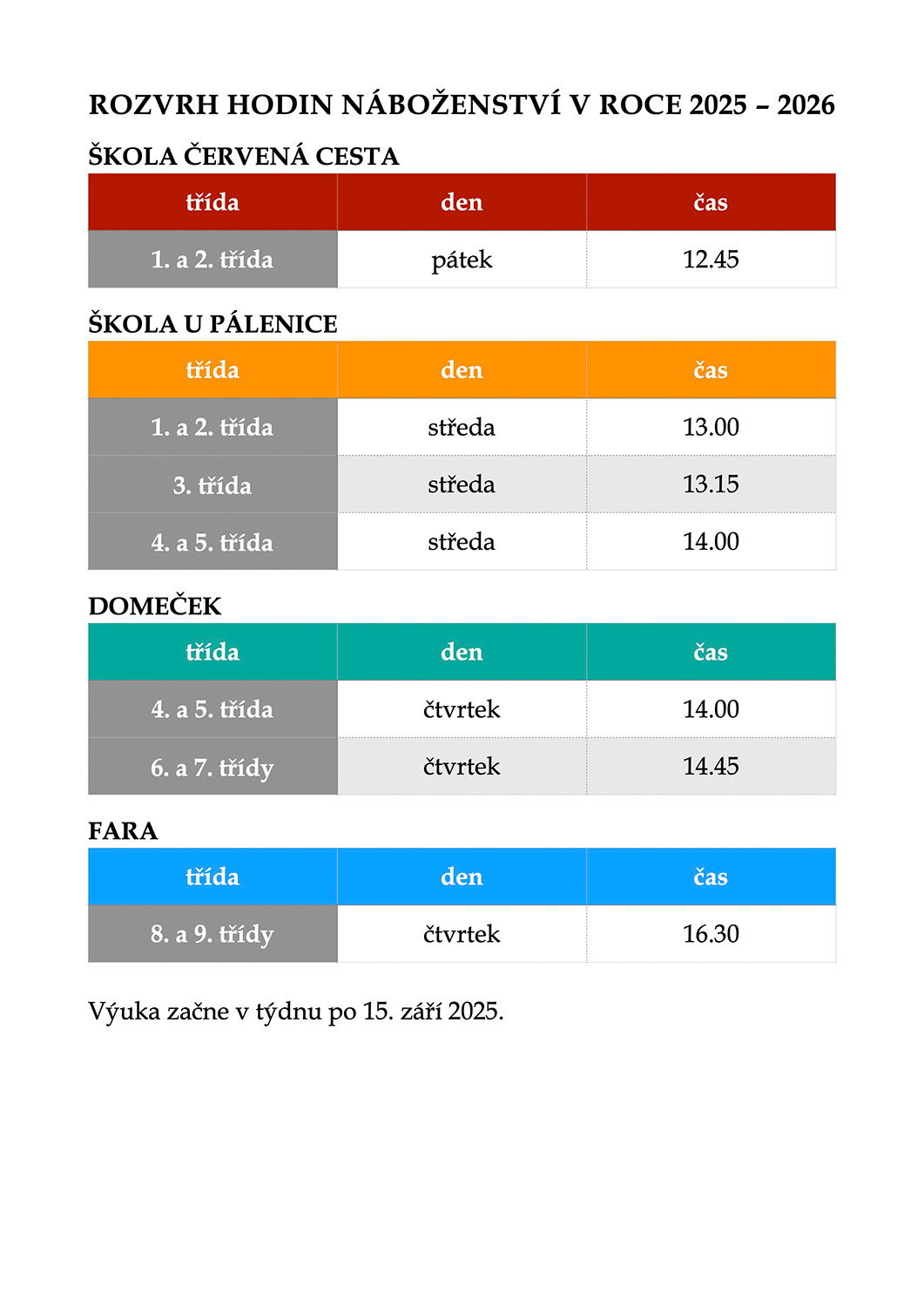 Níže naleznete rozvrh hodin náboženství (případné změny zde budou ihned publikovány).