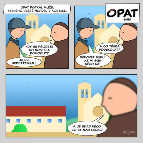 Dnešní kázání začneme krátkým příběhem. Jednoho dne vyšel opat z kláštera na mši svatou, kterou měl ve vedlejší vesnici. Jeden muž mu nabídl svezení a opat to přijal. Přisedl k němu, a když spolu prohodili pár slov, zeptal se: „Jste milý člověk, ale neznám vás z kostela, přijdete se někdy pomodlit?“ Na to muž zakroutil hlavou: „Já se mám dobře, já nic nepotřebuji, tak co bych se modlil.“ Opat se však nenechal odradit: „V modlitbě nemusíte jen prosit, můžete Pánu Bohu i děkovat.“ Na to muž odvětil: „Milý pane faráři, děkovat budu, až mi Bůh něco dá! Všechno, co mám, jsem získal díky své vlastní práci.“ Chvíli bylo ticho, muži se dívali po krajině, až nakonec opat vyslovil poslední větu: „Příteli, a je snad na světě něco, co by nám Bůh nedal?“